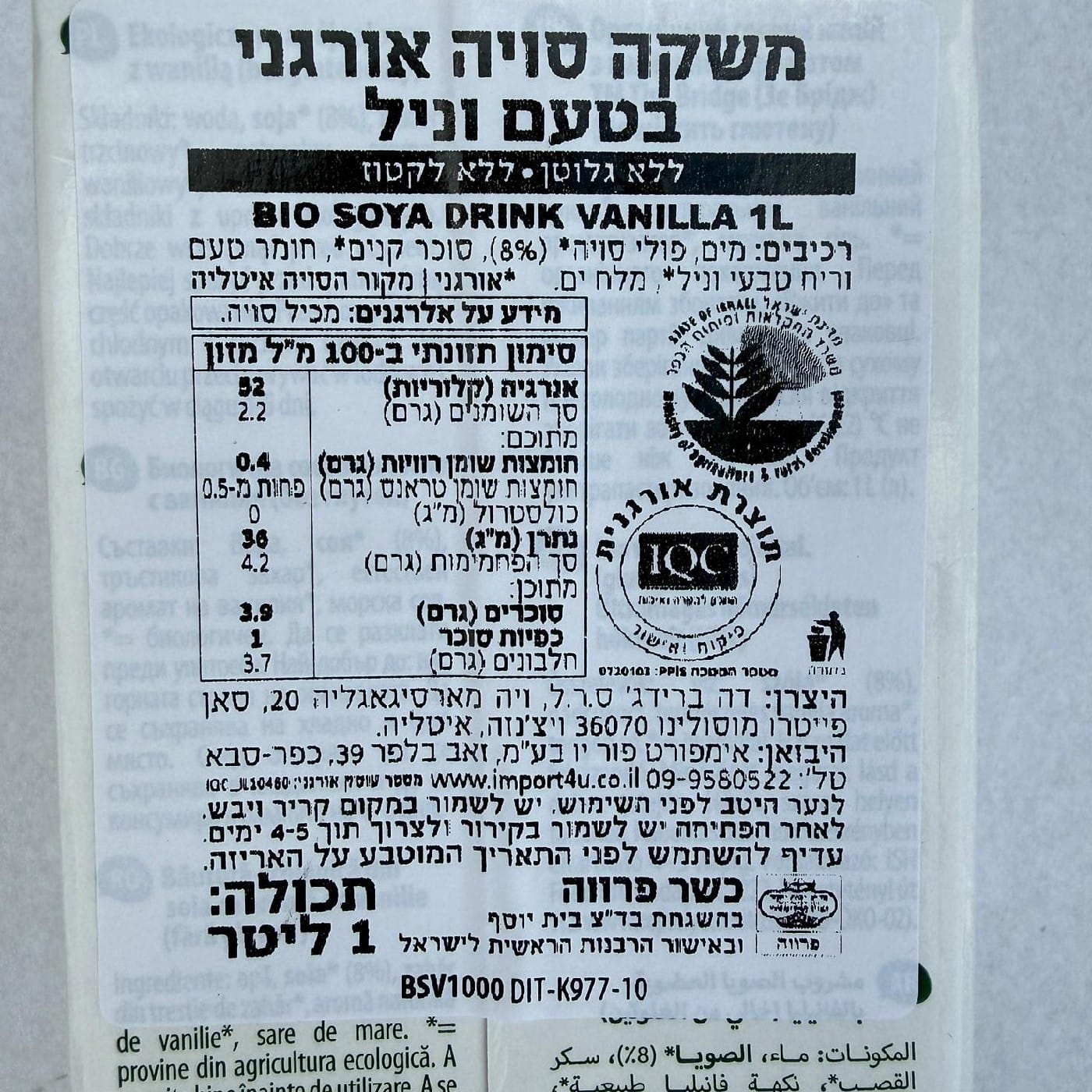 משקה סויה וניל אורגני